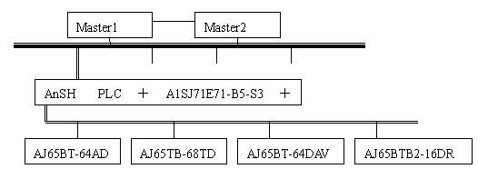 從站采用AnSH PLC 智能控制單元,主要作用是管理AD、DA、DI/DO的端口I/O操作以及計(jì)數(shù)定時(shí)模塊的設(shè)定,并且將所采集的數(shù)據(jù)負(fù)責(zé)上傳到主站,并從主站獲得的控制參數(shù)下傳之AO、DO模塊,控制相應(yīng)的執(zhí)行結(jié)構(gòu)。AD、DA、DI/DO以及計(jì)數(shù)定時(shí)模塊分別用于采集煅燒爐中的溫度、給控制三相異步電機(jī)旋轉(zhuǎn)的變頻器提供0~10V控制信號(hào)源、控制電機(jī)的起停以及監(jiān)測控制開關(guān)的狀態(tài)、控制三相異步電機(jī)旋轉(zhuǎn)的時(shí)間等。模塊的選用為:★模擬量采集:AJ65BT-64AD ,★模擬量輸出:AJ65BT-64DAV ,★數(shù)字量輸入/輸出:AJ65BTB2-16DR,★熱電偶輸入:AJ65TB-68TD ,★高速計(jì)數(shù)器:AJ65BT-D62。四條從站的配置是相同的,分別控制四條生產(chǎn)線。