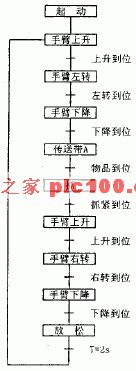 根據對機械手的順序動作要求,可以畫出時序圖如圖2所示。由時序圖可作出圖3所示的機械手動作流程圖。