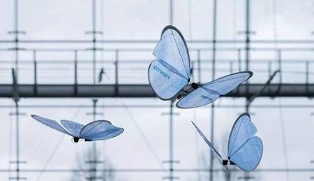 這只蝴蝶僅重32克,翅膀展開長50cm,而它身上僅帶有一個傳感器和舞動翅膀的機械構造,它的飛行路線完成靠場地上數個攝像頭的幫助。這設計可以最大限度地減輕處理器的負擔和盡量保持蝴蝶體型輕巧,最重要是可以控制成群機械蝴蝶飛舞。