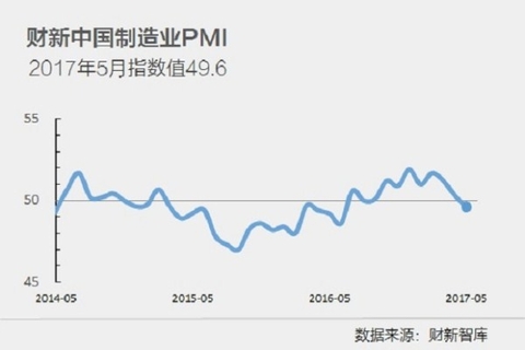 6月1日公布的5月財新中國制造業采購經理人指數(PMI)錄得49.6,較4月回落0.7個百分點,這是11個月以來首次落入臨界點以下,顯示制造業運行狀況由擴張轉為收縮。