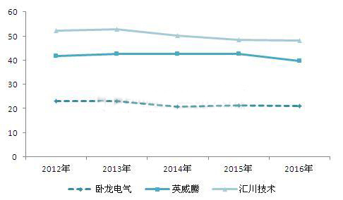 從我國(guó)伺服電機(jī)行業(yè)上市公司產(chǎn)品的毛利率來看,英威騰與匯川技術(shù)兩家企業(yè)低壓變頻器與伺服類產(chǎn)品的毛利率保持在40%以上的高水平,臥龍電氣的電機(jī)及控制裝置產(chǎn)品的毛利率也保持在20%以上。伺服電機(jī)行業(yè)整體毛利率水平處于較高水平,企業(yè)伺服類產(chǎn)品盈利能力較強(qiáng)。