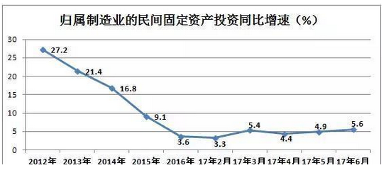 筆者曾經接觸過很多制造企業的高管,感覺他們普遍不太理解《中國制造2025》提出的以兩化融合為主線,以智能制造為主攻方向的中國制造業轉型升級路徑。對于他們來說,最大的疑問就是到底什么是智能制造、什么是兩化融合?從現在宣傳的案例看,似乎都是投資進行設備、網絡和系統的升級改造,實施“機器換人”等等。但是這樣做了企業就一定能盈利嗎?如果投資沒有取得預期效果,是否會進一步影響企業的資金鏈和現金流?特別是在當前及未來一段時間內,中國經濟還將持續運行在“L”型曲線的底部,而金融去杠桿對于實體經濟的影響,制造企業的老板們更是“春江水暖鴨先知”。根據國家統計局數據,近年來歸屬制造業的民間固定資產投資增速持續快速下降,雖然2017年開始出現了企穩回升的勢頭,但增速仍在低位徘徊。