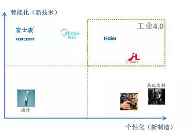 當企業同時需要很高的智能化和個性化水平時,工業4.0是首選。以海爾為例,在最新的網絡化戰略轉型中,海爾同時在信息化和自動化上進行升級改造:底層用戶數據互聯互通,圍繞用戶組織全流程,同時打造更加定制化的家電品類,建設互聯工廠,以小批量柔性化的生產方式應對更加個性化的訂單。