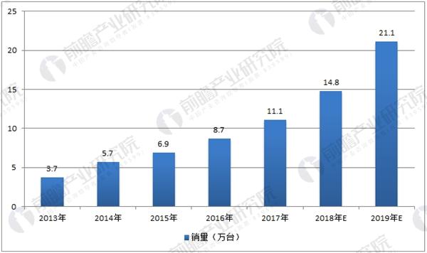 前瞻產(chǎn)業(yè)研究院發(fā)布的《工業(yè)機(jī)器人行業(yè)產(chǎn)銷需求預(yù)測(cè)與轉(zhuǎn)型升級(jí)分析報(bào)告》指出,2018年工業(yè)機(jī)器人需求有望出現(xiàn)拐點(diǎn),增速有望達(dá)到34%。從下游板塊的需求增長及宏觀層面關(guān)于產(chǎn)業(yè)升級(jí)的強(qiáng)規(guī)劃兩方面進(jìn)行考慮,對(duì)國內(nèi)工業(yè)機(jī)器人需求量進(jìn)行測(cè)算,預(yù)計(jì)2018年工業(yè)機(jī)器人銷量將達(dá)15萬臺(tái)左右。
